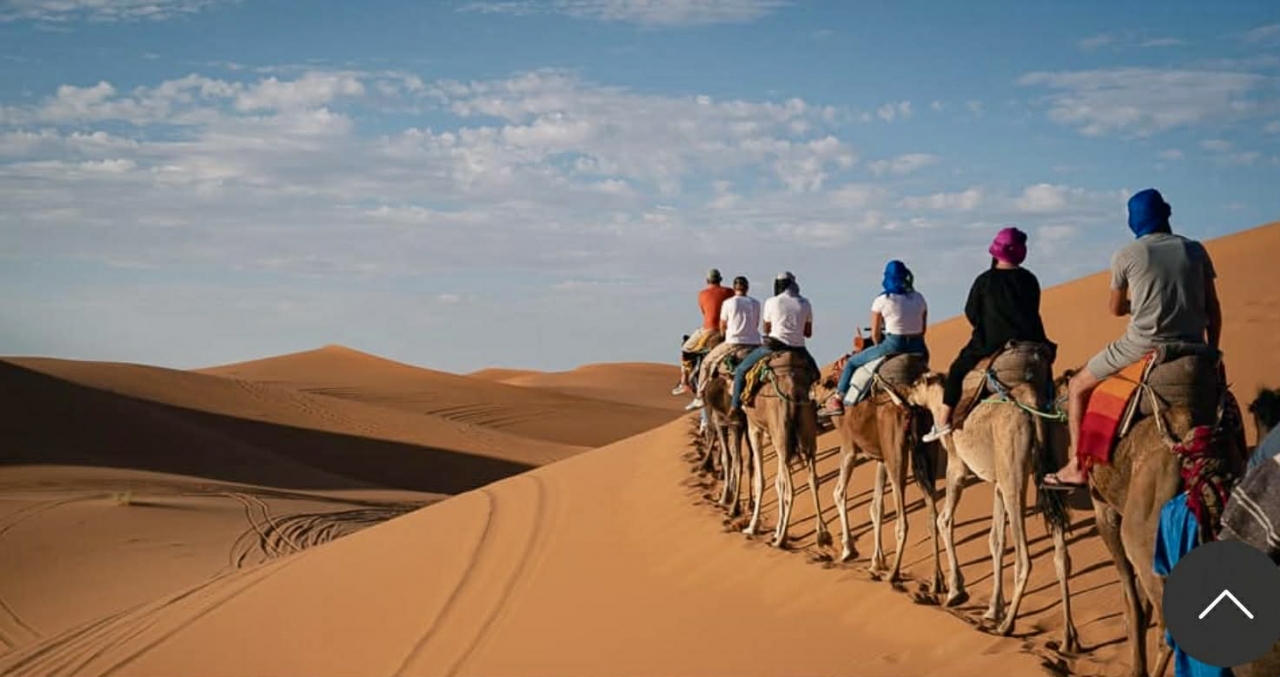 Μετά το πρωινό, ξεκινάμε την πορεία μας μέσω της κοιλάδας DRAA διασχίζοντας τους ηφαιστειακούς σχηματισμούς των βουνών ANTI-ATLAS, προς το AGDEZ. Θα περάσουμε από χωριά με χαρακτηριστικής αρχιτεκτονικής ιστορικά οχυρωμένα φρούρια (kasbah) και θα φτάσουμε στην κοιλάδα DADES. Tα φαράγγια της κοιλάδας φημίζονται για τους απόκρημνους κόκκινου βράχους που φτάνουν σε ύψος τα 500 μέτρα. Ο δρόμος με τις απότομες στροφές προσφέρει μερικές από τις πιο εμβληματικές φωτογραφικές λήψεις στο Μαρόκο. Στο τέλος της ημέρας φτάνουμε στον τελικό προορισμό πριν την είσοδό μας στην έρημο, στο ERG CHEBBΙ. Καμήλες πλέον μας οδηγούνστον καταυλισμό μας στην έρημο. Δείπνο, διανυκτέρευση και συνοδεία μουσικής σε έναν πολυτελή καταυλισμό Νομάδων.