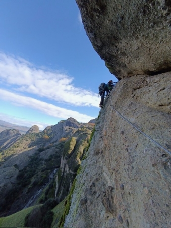 Η ανάβαση θα γίνει με ασφάλιση από δύο πιστοποιημένους Οδηγούς Βουνού. Η διάρκειά της είναι 3-4 ώρες , ανάλογα με την εμπειρία-ικανότητα της ομάδας. Όμως, ΔΕΝ ΕΝΔΕΙΚΝΕΙΤΑΙ ΓΙΑ ΑΤΟΜΑ ΜΕ ΥΨΟΦΟΒΙΑ-ΑΚΡΟΦΟΒΙΑ, λόγω της έντονης έκθεσης. Ο απαραίτητος ειδικός εξοπλισμός θα εξασφαλιστεί είτε από τους Οδηγούς (αναρριχητικό σχοινί, κιτ απόσβεσης πτώσης), είτε από τον Σύλλογο (κράνη, μποντριέ, καραμπίνερ ασφαλείας) και θα σας δοθεί λίγο πριν την ανάβαση. Εκ μέρους των συμμετεχόντων απαιτούνται παπούτσια approach ή απλά ορειβατικά (όχι ημιάκαμπτα/ άκαμπτα) και γάντια (κατά προτίμηση ειδικά via ferrata ή δερμάτινα με κομμένα δάχτυλα).